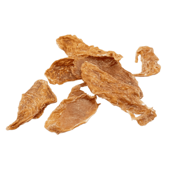 Snack de pechuga de pollo deshidratada en tiras 60g aprox, para perros y gatos