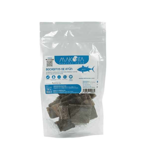 Nuestros bocaditos de atún es un snacks natural para perros y gatos son idóneos para activar el paladar y activar grandes sensaciones en vuestras mascotas gracias a nuestro proceso de deshidratación a baja temperatura , conserva todos los nutrientes manteniendo todas las cualidades organolépticas .