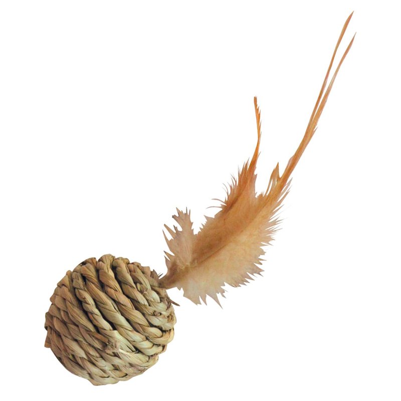 La Bola Seagrass con Plumas es un juguete en forma de bola elaborado con cuerda de algas y plumas, a tu amigo bigotudo le volverá loco y se entretendrá en cualquier momento con él.